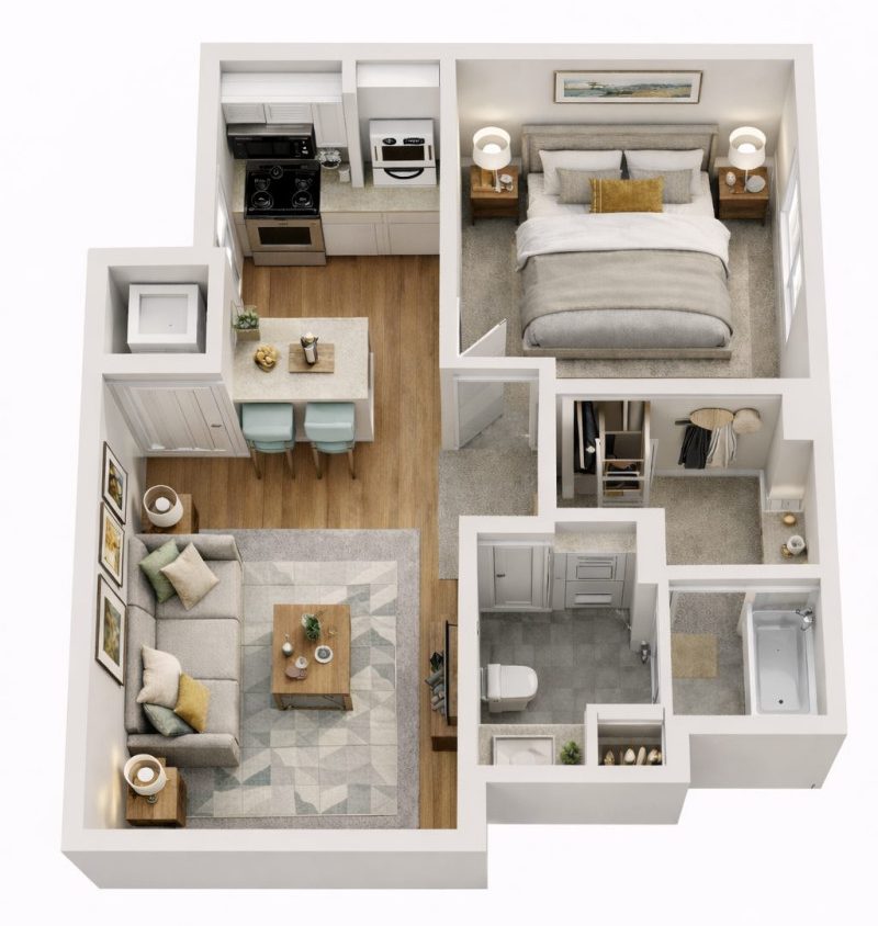 Apartments – A1 (1 Bed / 1 Bath) | 625 sq ft | Executive Housing